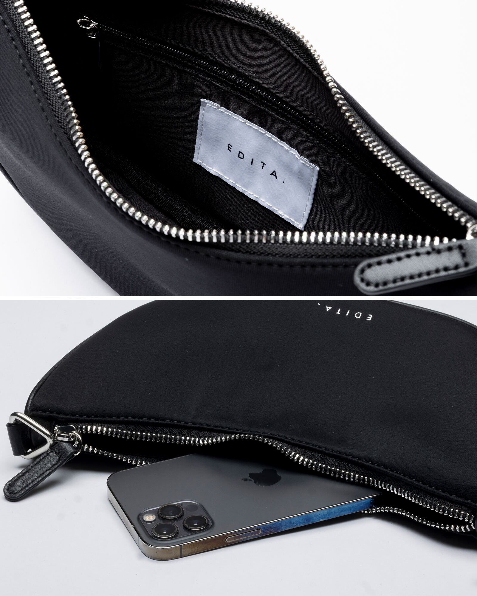 短いストラップは手持ち・肩掛けに、長いストラップは斜めがけOK。
