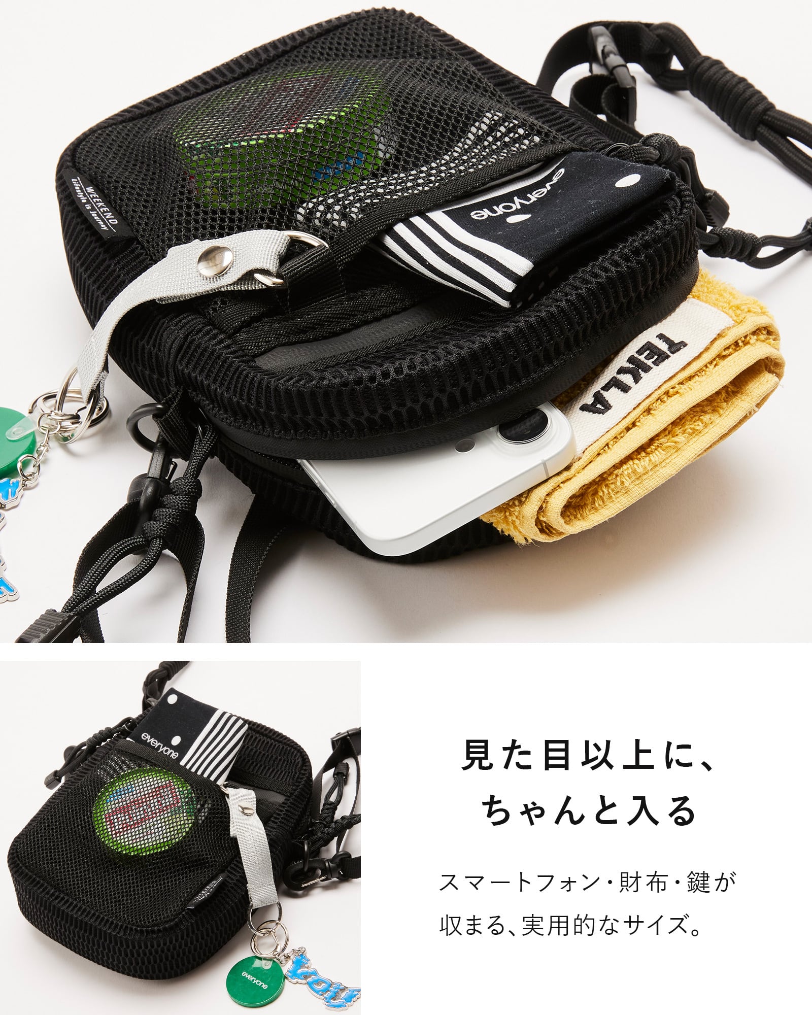 財布・スマートフォン・ペットボトルなど、必要なものが無理なく収まります。
