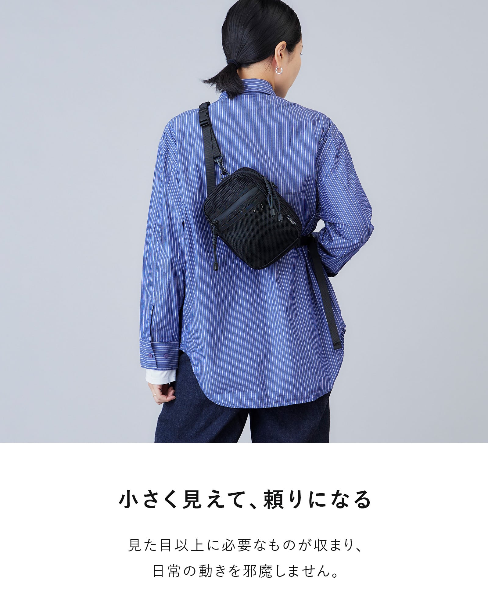 街でも、旅行でも、公園でも使いやすい、ユニセックスデザインです。