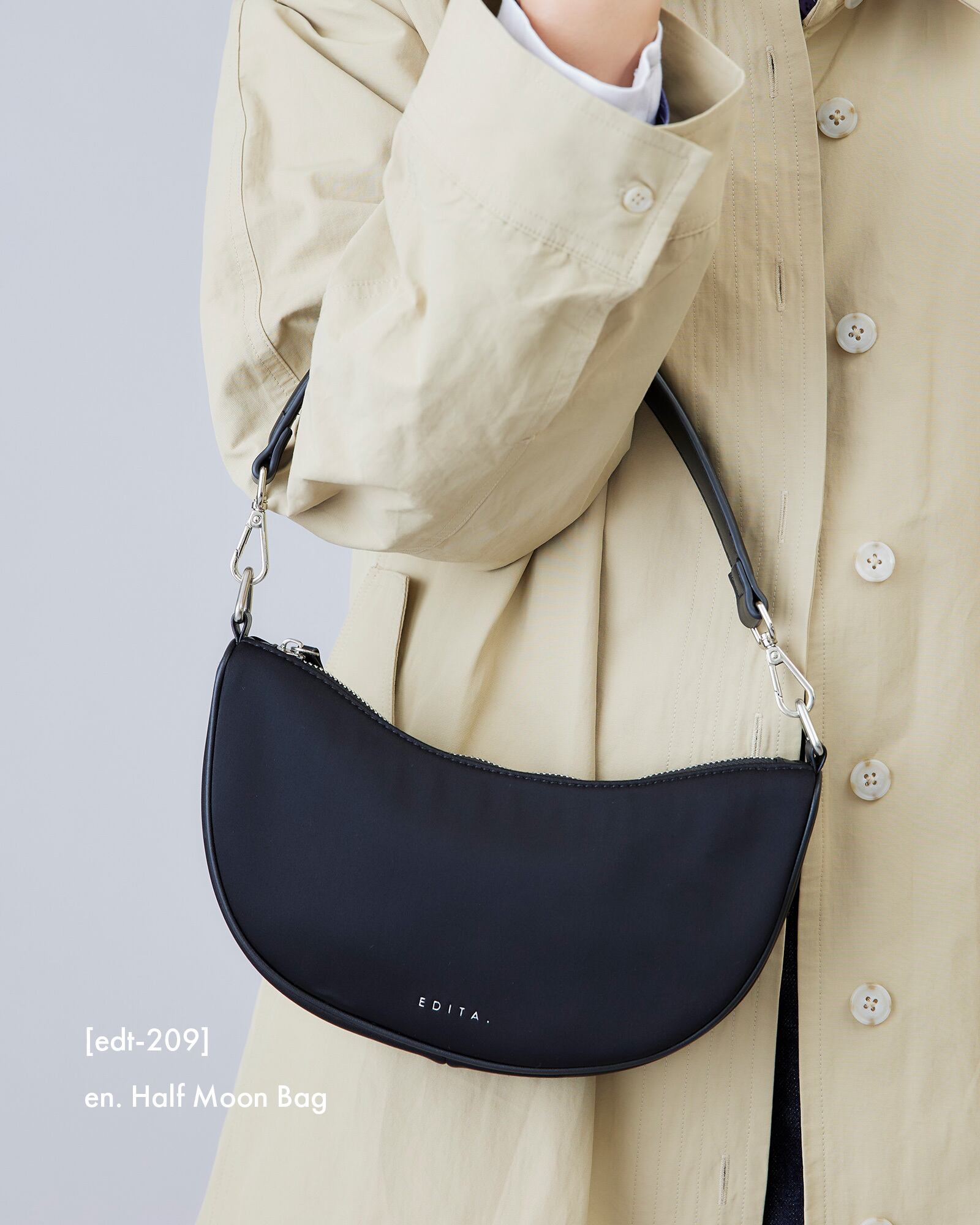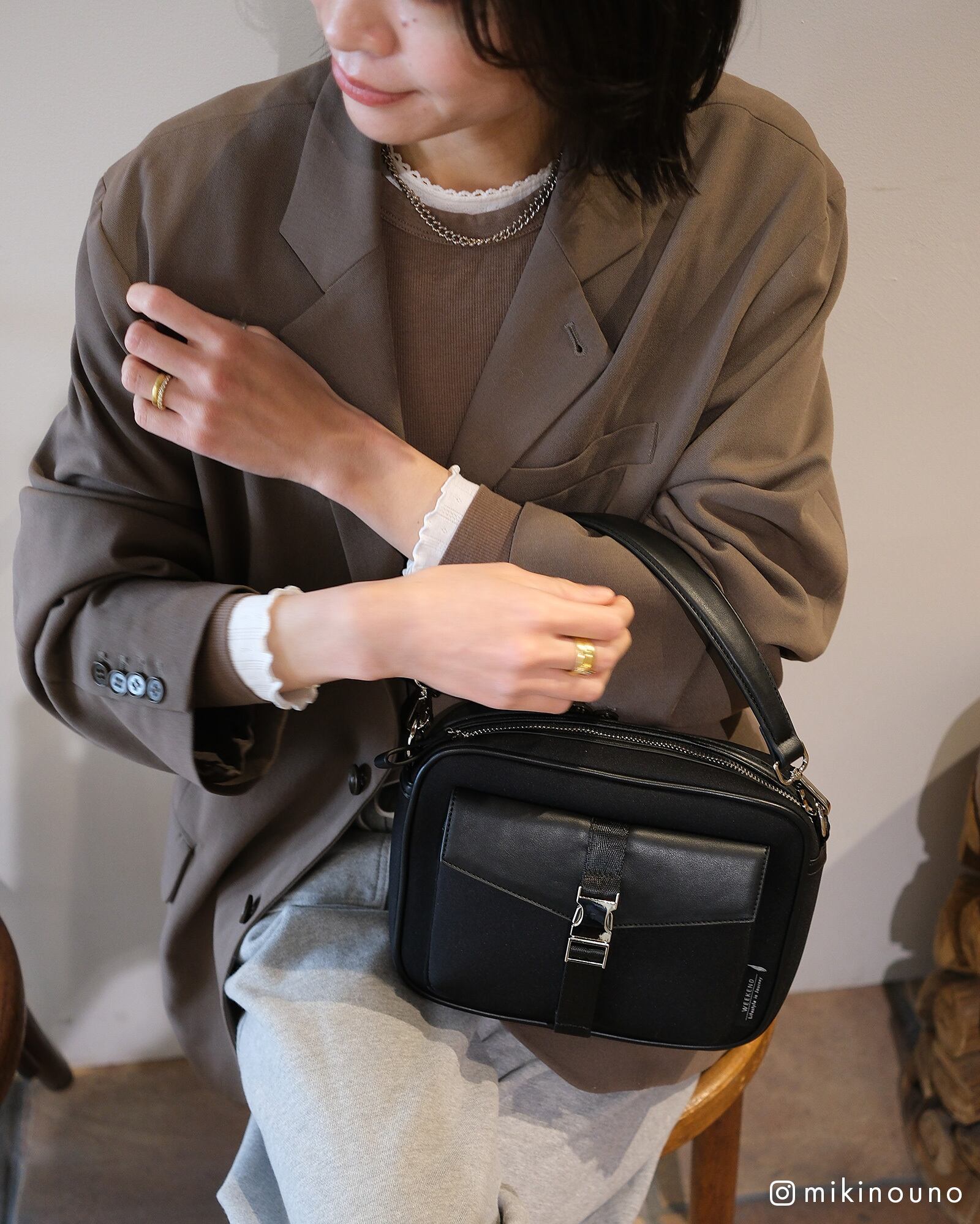 重くなりがちなレザー素材を使わず、 軽やかさを保ったまま、印象だけを引き締められます。