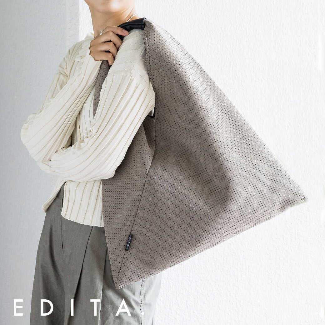 すっきりとした三角形フォルムがコーデに抜け感をプラスするトートバッグ。