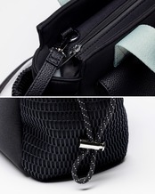 トレンド感ある横長フォルムとフロントのレザーポケットがモード見えするバッグ。