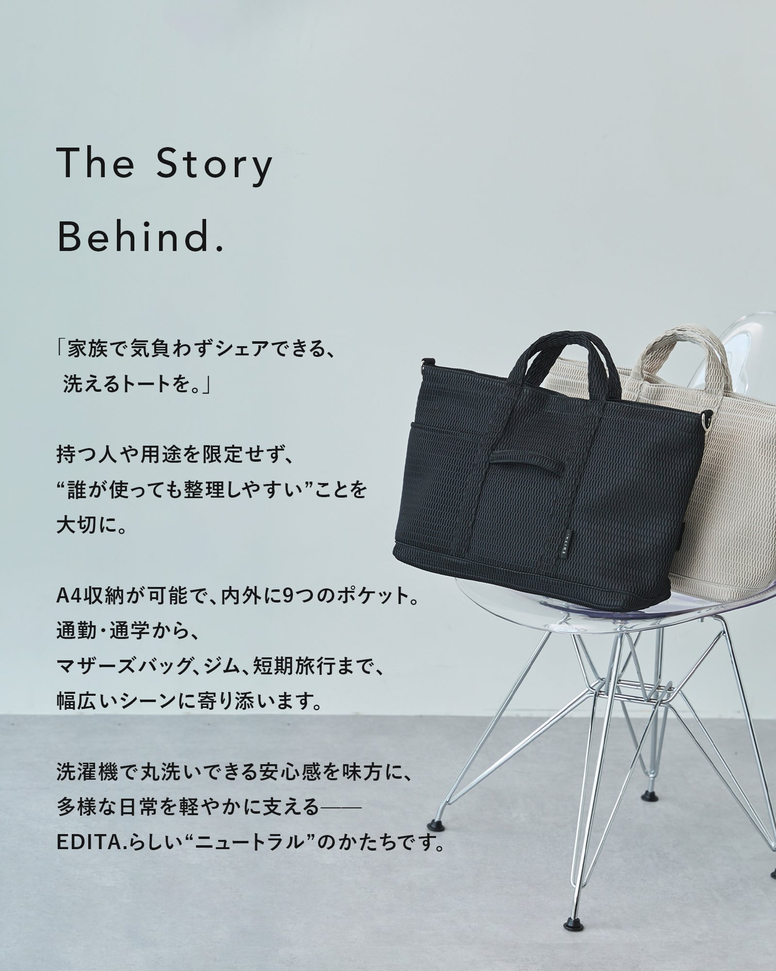 ジェンダーレスに家族みんなで使えるようなデザインを目指して作ったトート。