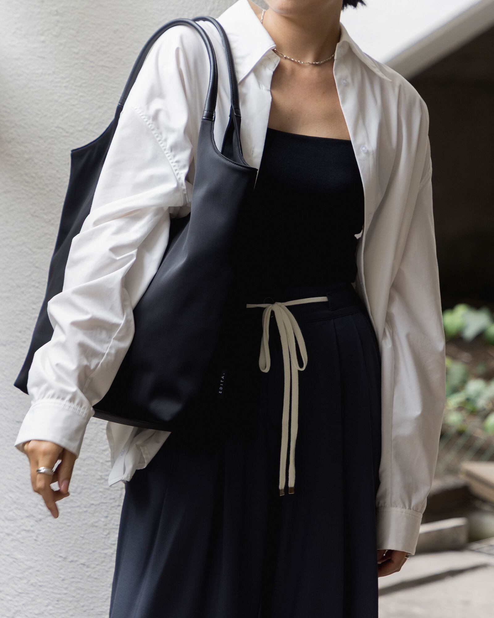 オフィスカジュアルにも合わせやすいきれいめな生地感。