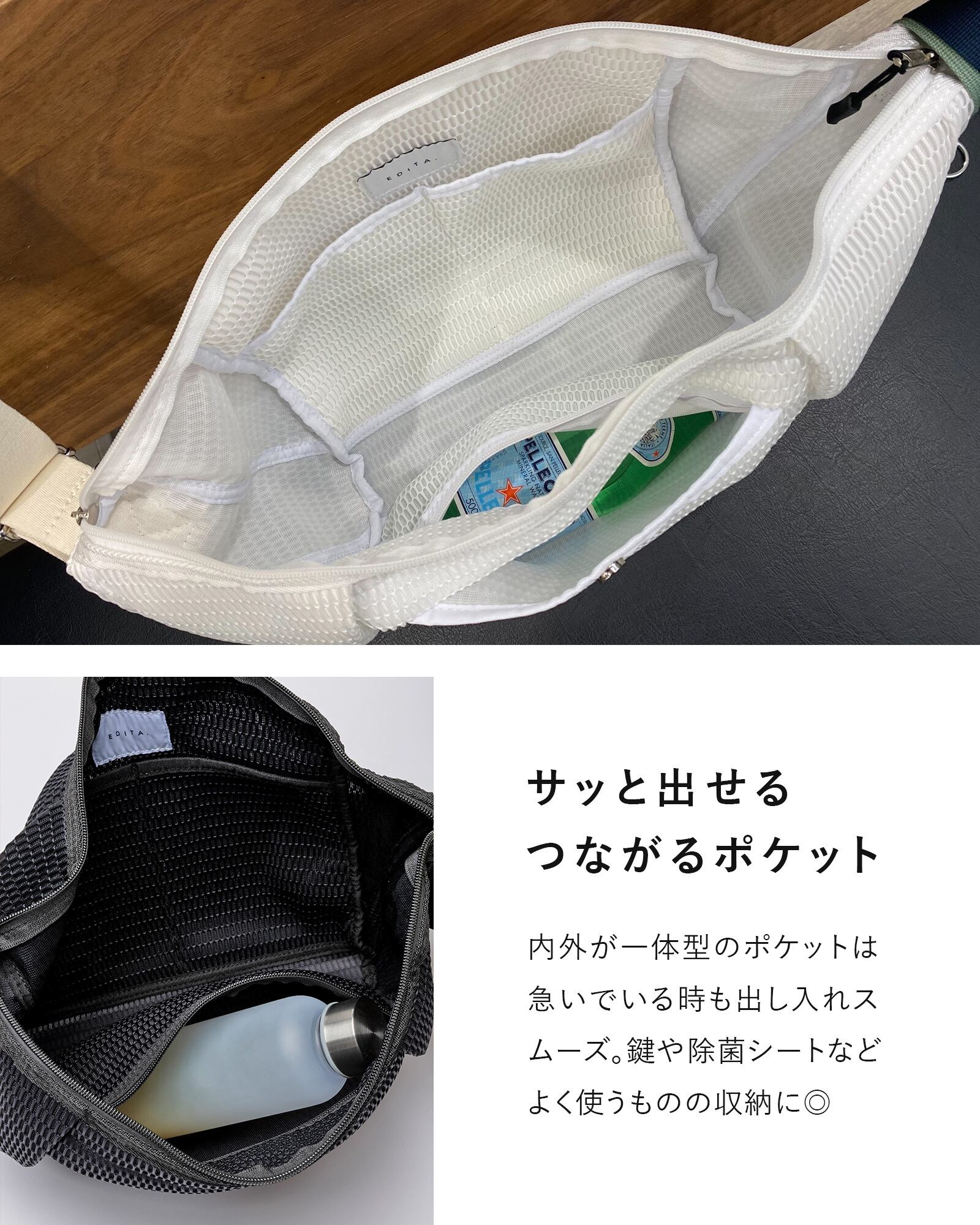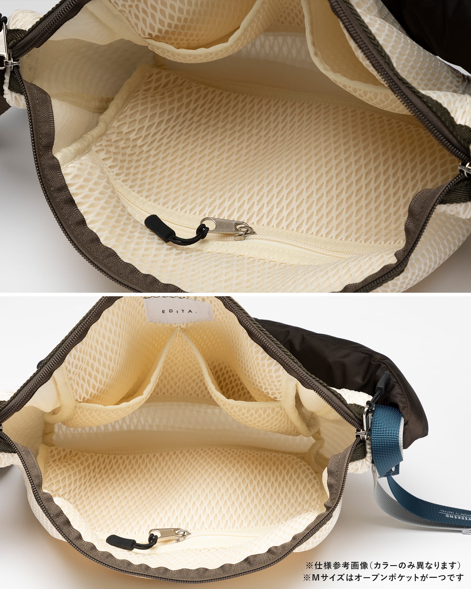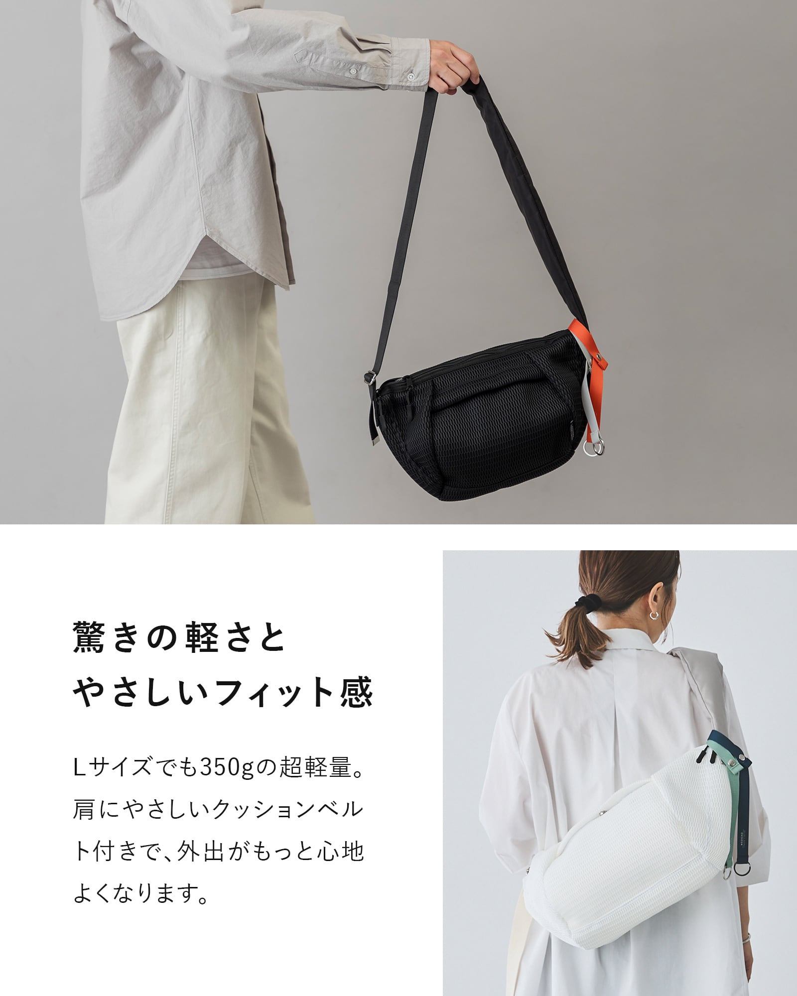 わずか310gという軽さで、外側のポケットは内側のファスナーポケットと一体型。外からも中からも物を取り出しやすく、使い勝手抜群!コンパクトなのに容量も7Lと十分で、日常の必需品がしっかり収納できます。
