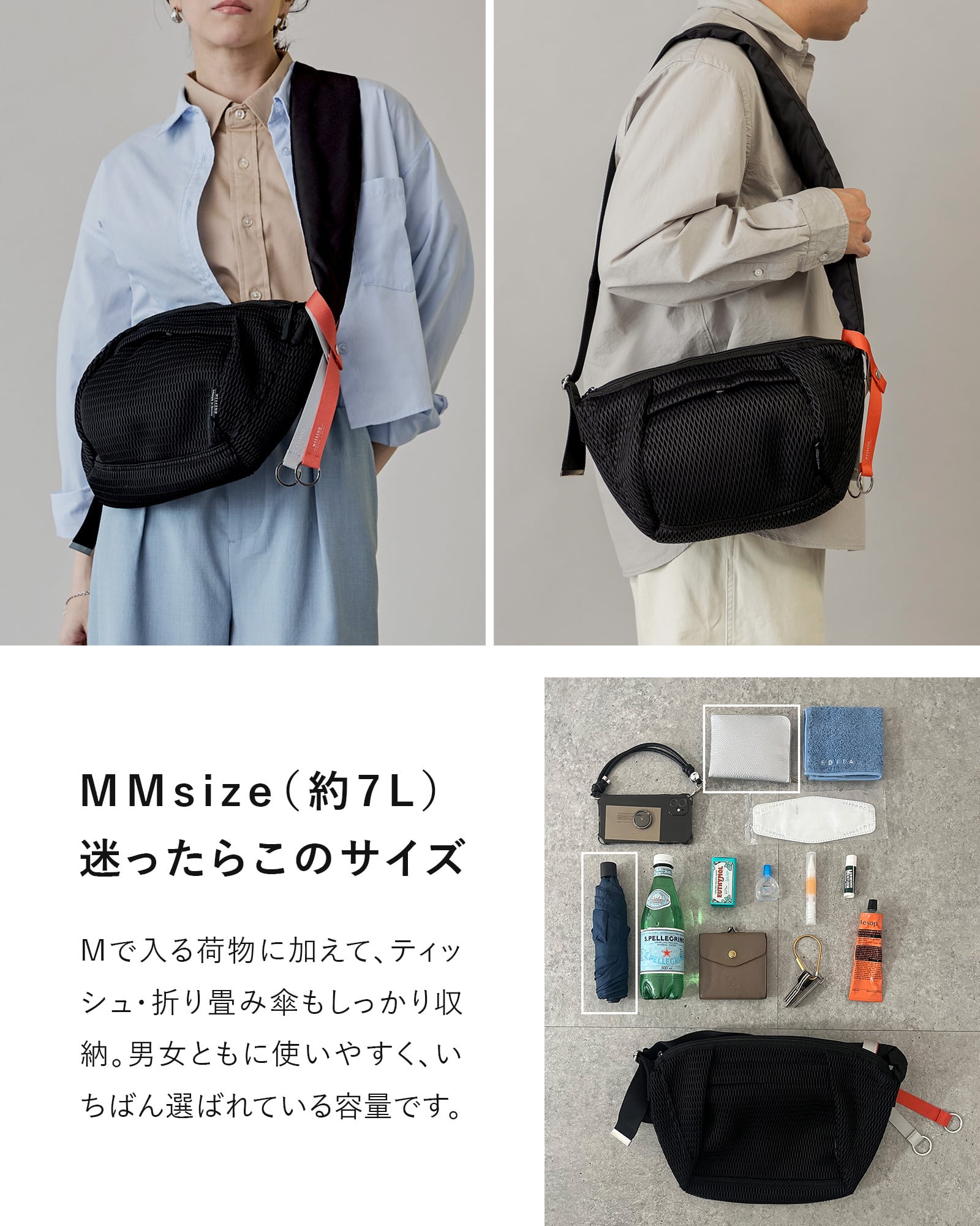 スタイリッシュで実用的なボディバッグ。MMサイズは、日常使いや旅行、アウトドアシーンでも大活躍します。ダブルジッパー仕様で物の出し入れがスムーズ。シンプルなデザインで男女問わず使用できるため、ファミリーやカップルでの兼用にも最適です。