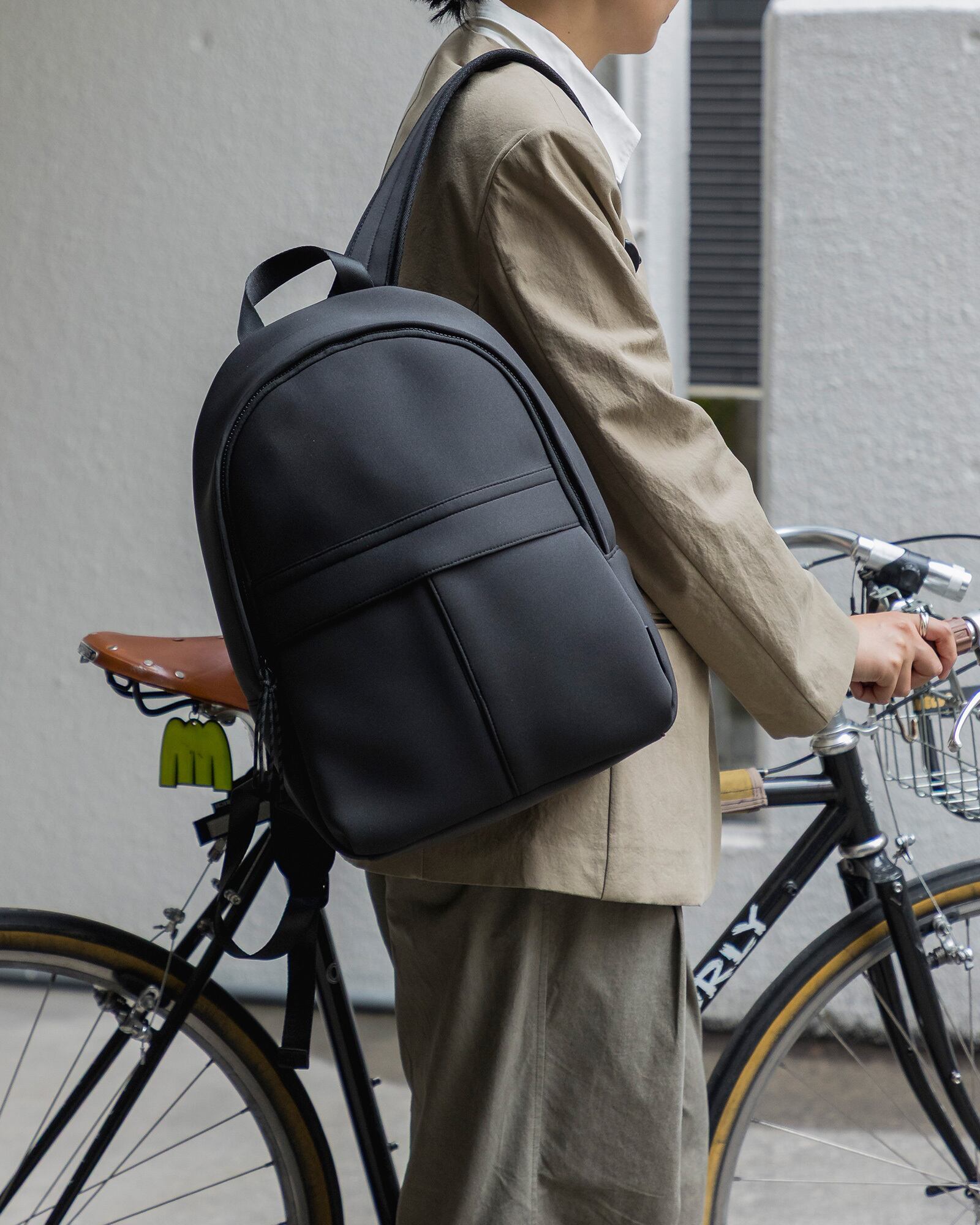 そのヘルメットバッグのディテールをリュックに落とし込みました。
