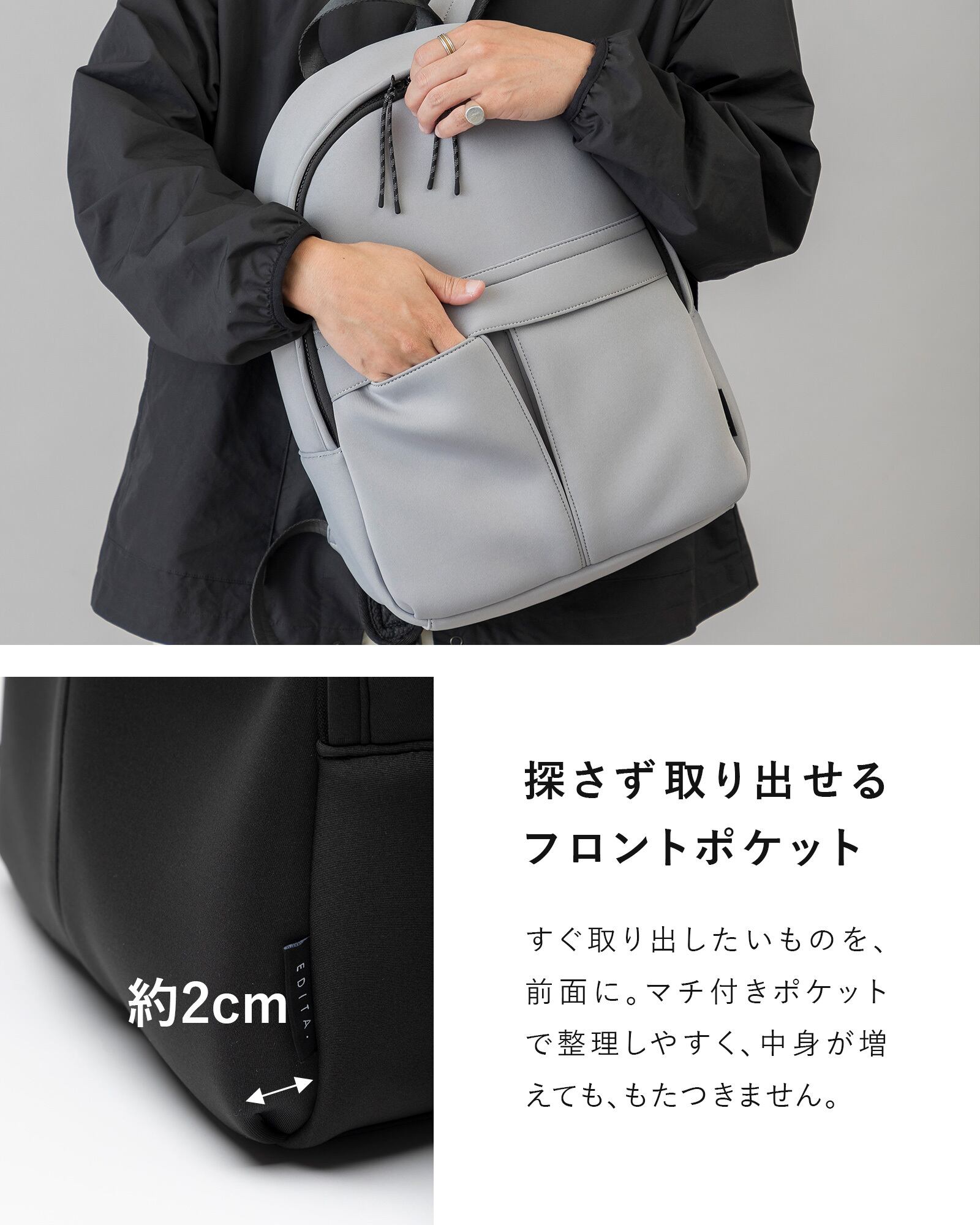 物を入れても厚みが出にくくスタイリッシュに持てます。