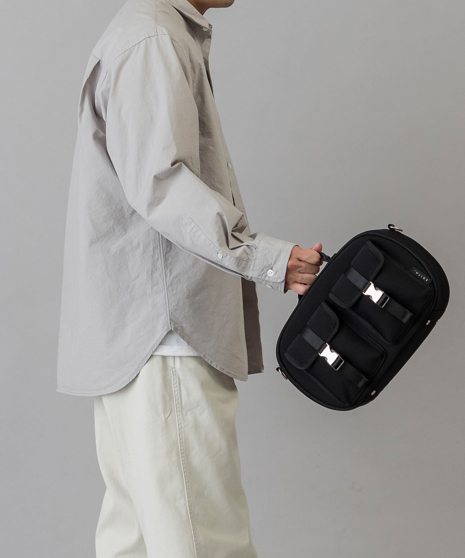 バックルポケットが実用性ありつつ、デザインポイントに。